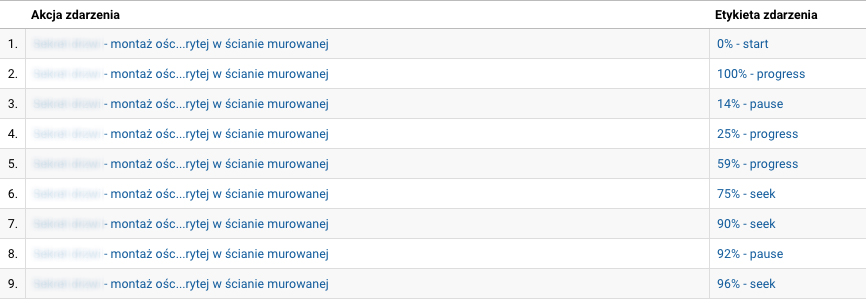 Jeżeli wszystko zrobiliśmy poprawnie, to w tym raporcie zobaczymy ile osób aktualnie ogląda nasz film i jakich aktualnie działań dokonują w interakcji z video.